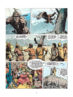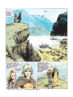 Voici les premières planches de l’album « L’île des mers gelées ». Aaricia et Solveig se rejoignent une dernière fois sur le promontoire rocheux qui surplombe leur village. Plus bas, Thorgal et Bjorn s’opposent encore une fois lors d’un concours d’adresse organisé pour les hommes du village. La cible du concours est un aigle attaché à un arbre, qui cherche désespérément à s’échapper. Un aigle, semblable aux deux magnifiques oiseaux qui observent les deux jeunes filles, songeuses et esseulées.