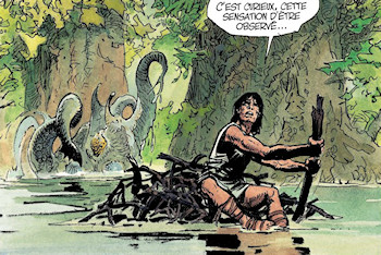 Jean Van Hamme est un auteur qui ne manque pas d’humour, mais qui en a fait peu usage dans Thorgal. Il faut gratter pour trouver des scènes amusantes. Van Hamme décrivait d’ailleurs son héros comme un gars carré, sans humour.
