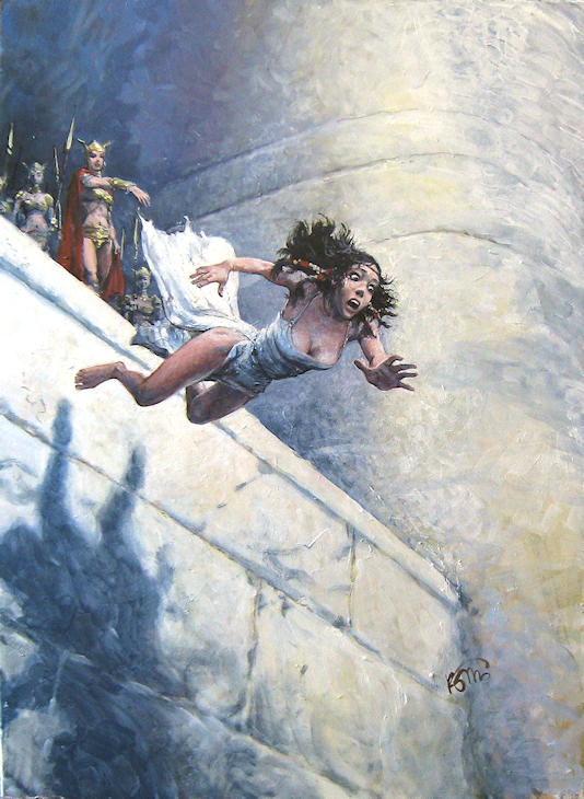 L’avant-dernière image est la toile de Rosinski, terminée, et la dernière est la version retouchée de cette toile, utilisée pour l’album. En dehors des couleurs, quelques retouches informatiques ont été effectuées. Le bras de Kriss est plus long, la main de la Walkyrie a changé de position.