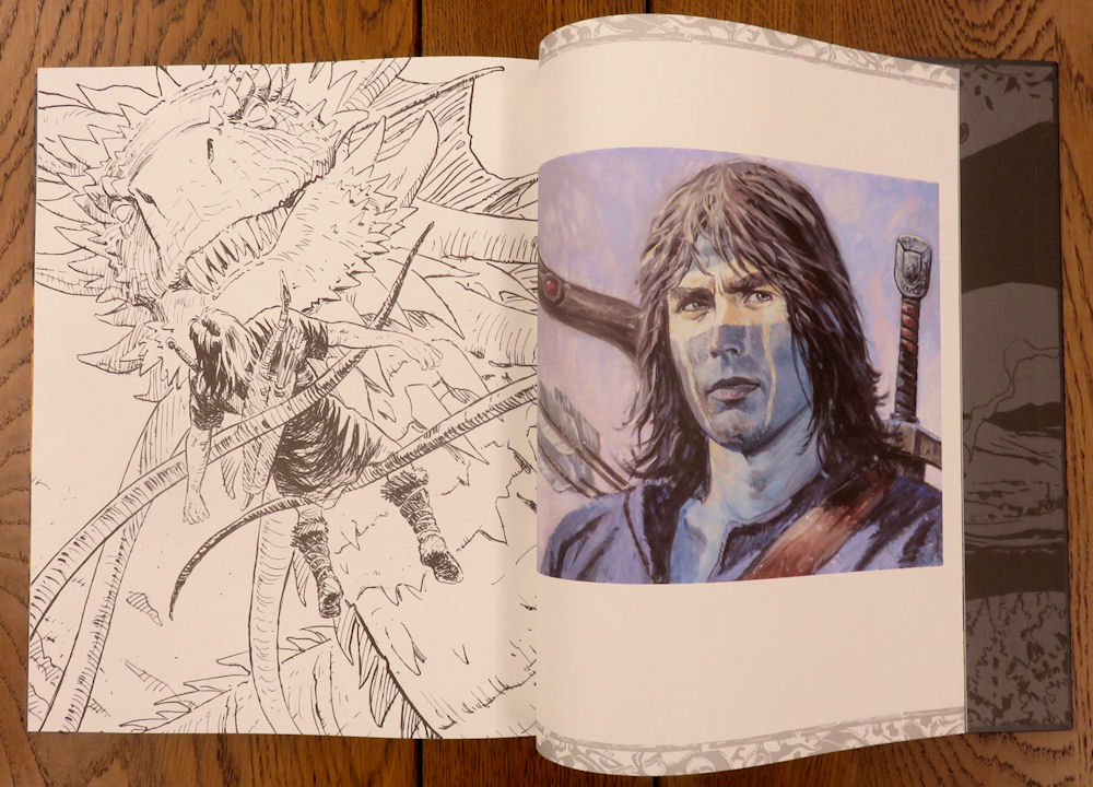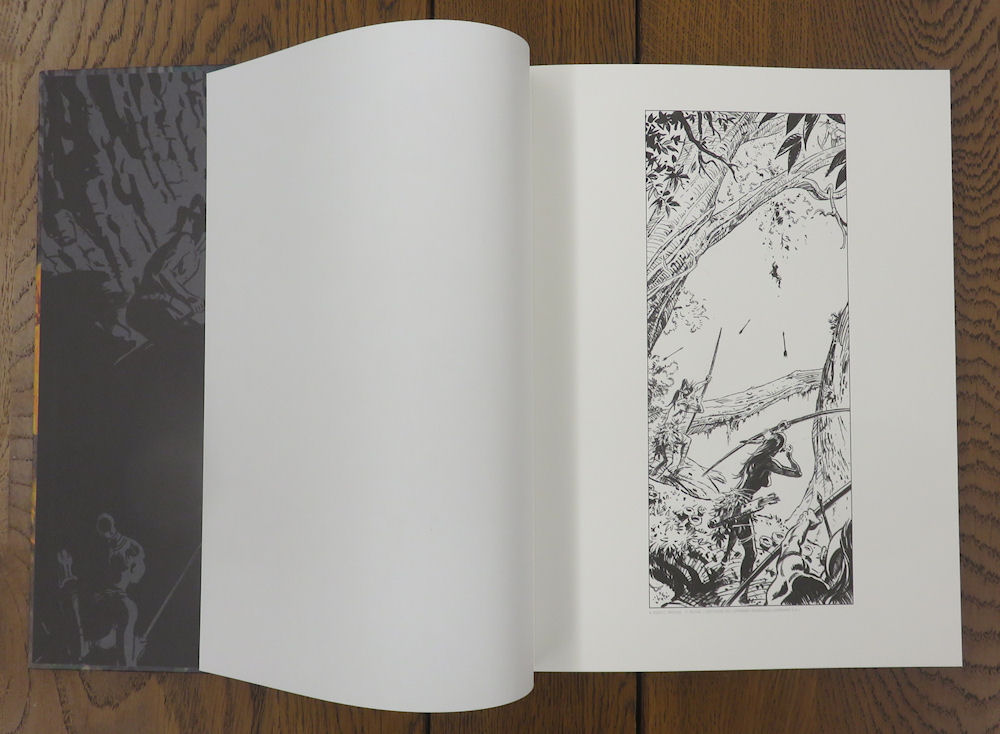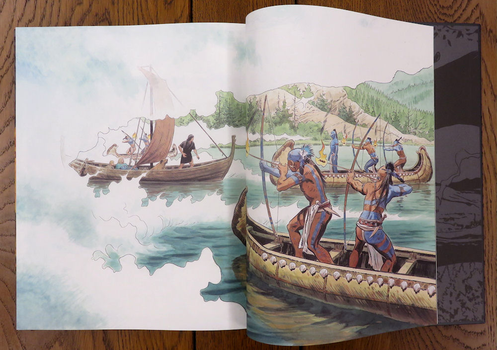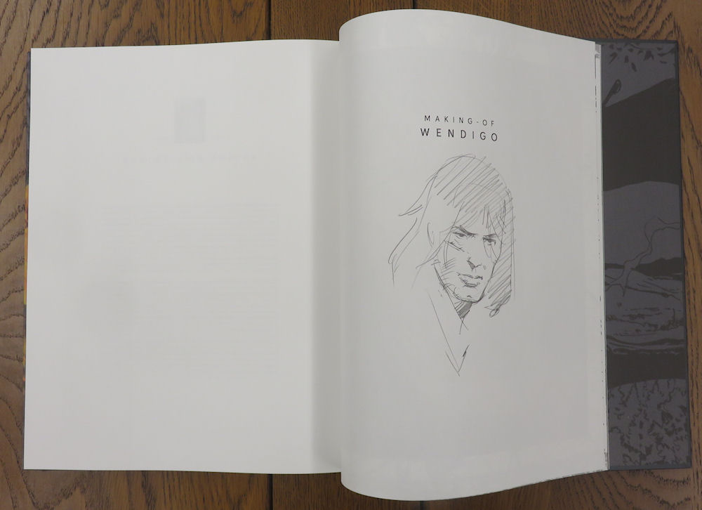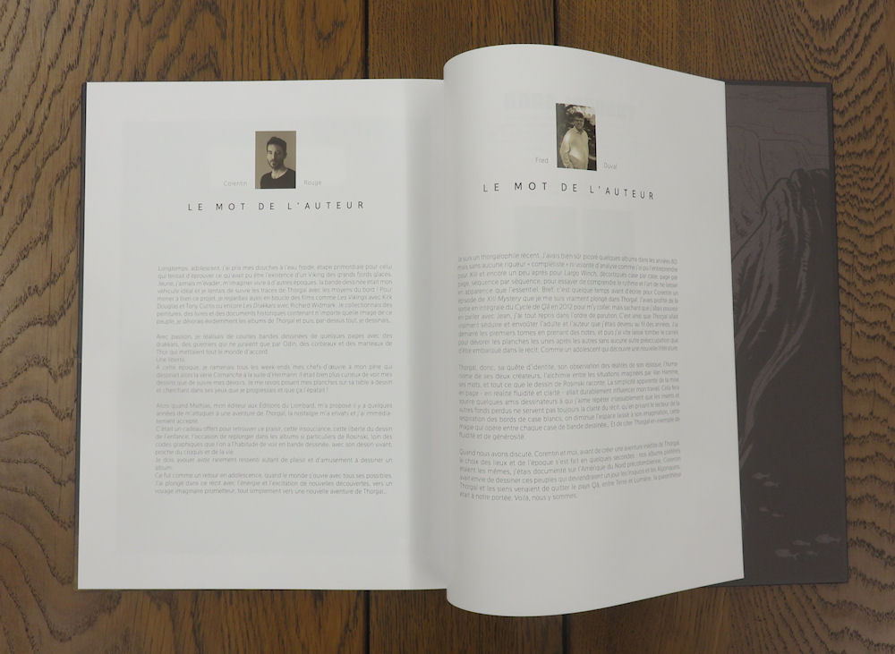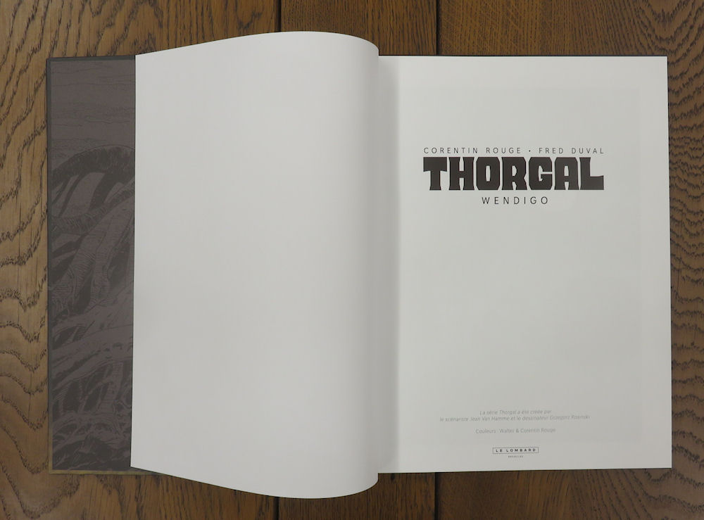 Gros et grand, l’album propose forcément des éléments complémentaires. Le premier est un frontispice imprimé sur papier cartonné, reproduisant l’une des magnifiques illustrations de l’album. Thorgal y est bien représenté, mais il faut le chercher !