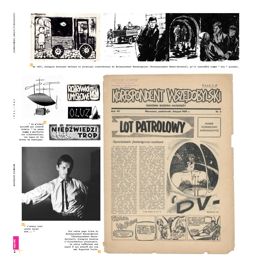 Le jeune Grzegorz découvre la bande dessinée, dans un journal francophone diffusé à l’est. Un premier contact déterminant, et déjà de premiers choix, puisque le petit garçon semble davantage attiré par le trait et la mise en image que par l’histoire racontée, dans une langue qu’il ne connaît pas.