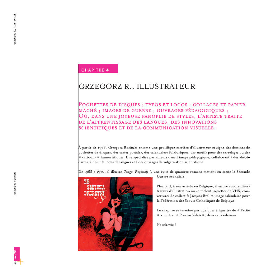 Le chapitre suivant de la monographie revient sur les travaux d’illustration réalisés par Rosinski. Une carrière parallèle qui démarre dès ses premières années d’auteur et se poursuit, dans ce chapitre, jusqu’à la fin des années 80.