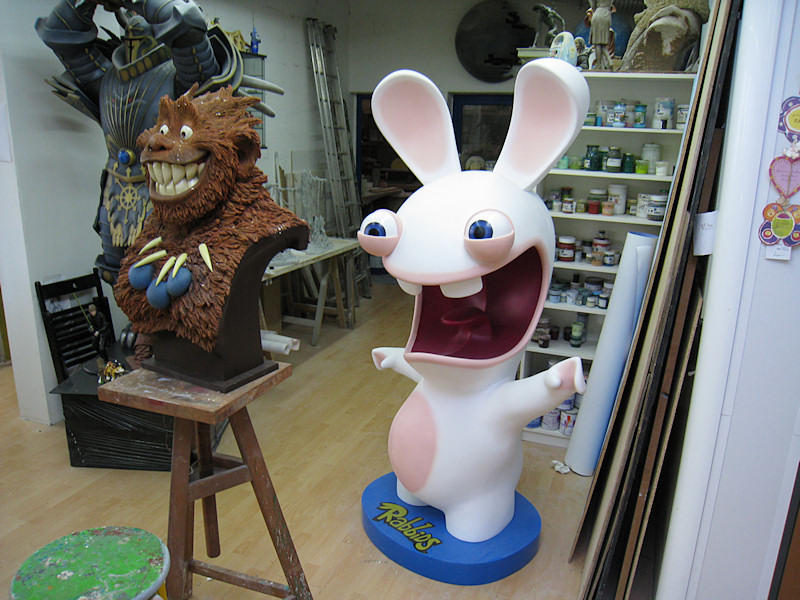 Attakus réalise également entre autres des sketchbooks, des carnets de croquis, dédiés à des auteurs BD et contenant des dessins exclusifs, des recherches, des story-boards… Au catalogue de l’atelier, on trouve aussi des design toys, jouets collectionnables édités en nombre limité, dont le champion toute catégorie est certainement ce lapin crétin de 2 mètres.