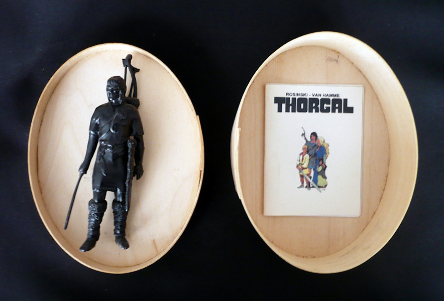Voici également des réalisations de fans, certainement parmi d’autres. La première a été offerte à Grzegorz Rosinski, on peut la voir dans son atelier. Thorgal y est représenté l’épée à la main, prêt au combat, en haut de marches de pierre. La deuxième, un buste, a été vue sur Internet il y a quelques années.