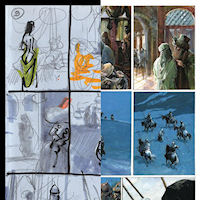 Grâce à différentes cases et planches interactives, vous pourrez apprécier dans cet atelier le travail du peintre au cours de différentes étapes, en partant des esquisses originelles extraites des carnets de story-board de l'auteur. Différentes étapes de la réalisation de la couverture vous sont également proposées.