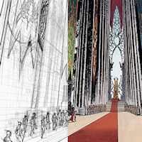 Une planche interactive présente le travail spectaculaire de Giulio de Vita, qui nous emmène dans le palais des Walkyries, jusqu'au tribunal de la déesse Freyja.