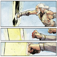 Accompagnés par Thorgal, Tanatloc et Jolan, vous découvrirez ici plusieurs scènes de l'album, au travers de points de vue différents et complémentaires qui nous permettent d'explorer la technique de Rosinski.
