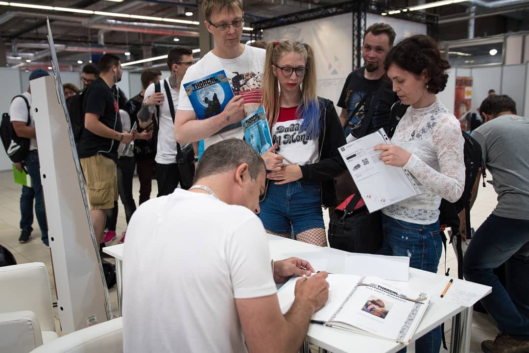 Grzegorz Rosinski et Roman Surzhenko étaient du côté de Varsovie, le week-end dernier, côte à côte pour parler de Thorgal, rencontrer le public polonais et passer un peu de temps ensemble.