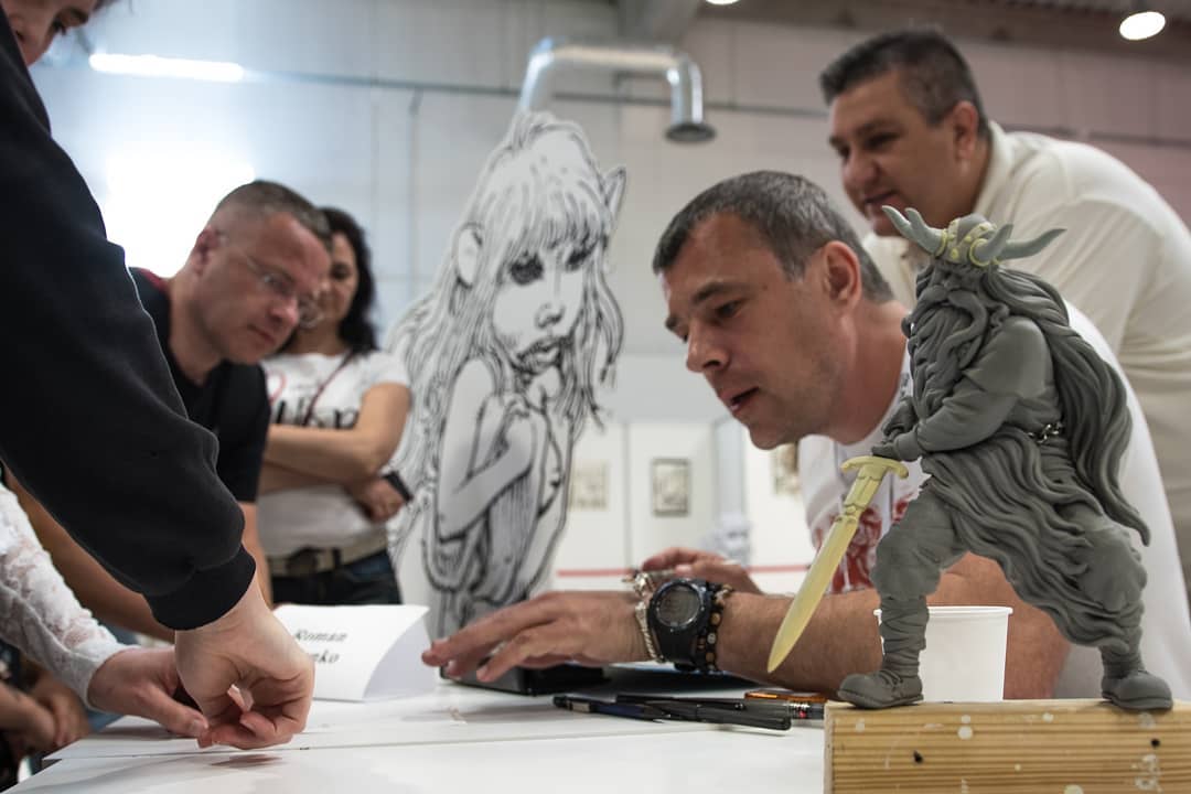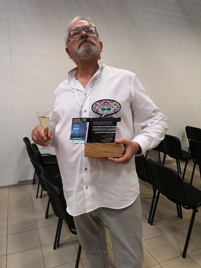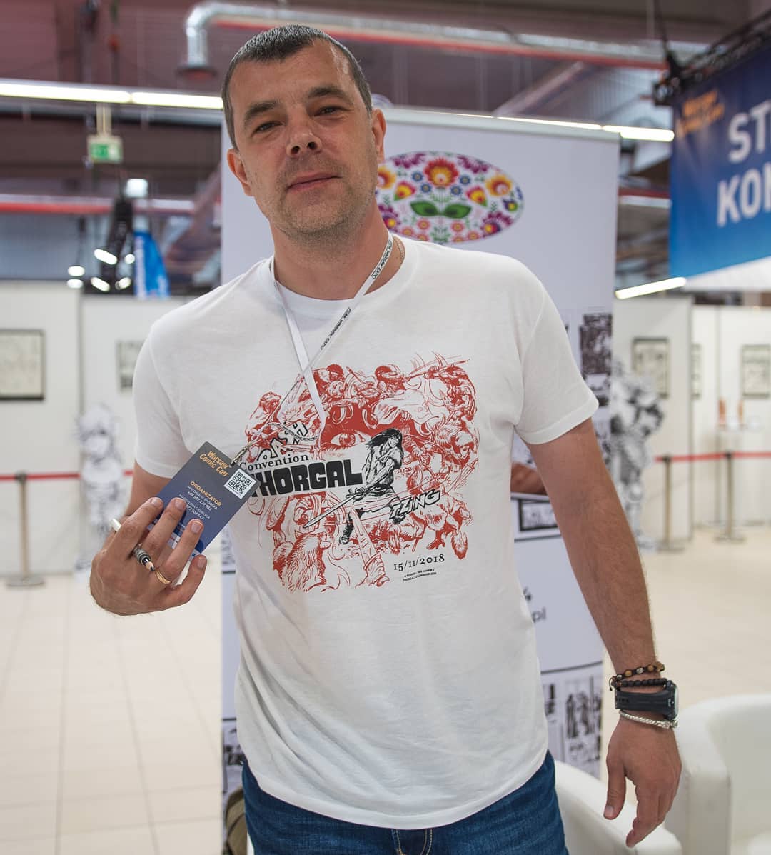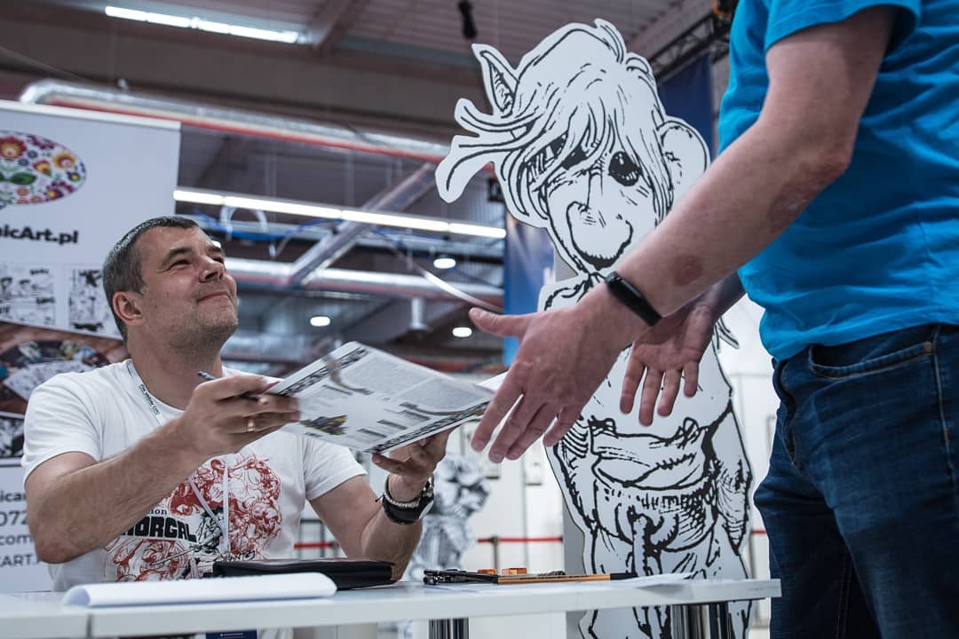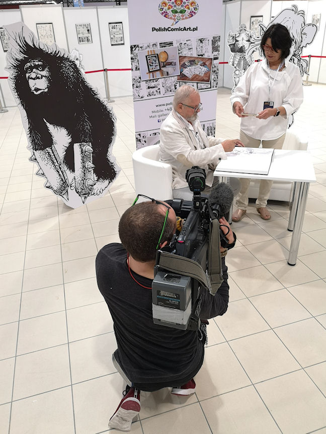 Grzegorz présentait notamment une nouvelle édition luxueuse de l’une de ses œuvres les plus célèbres, « Le grand pouvoir du Chninkel ». Il était d’ailleurs entouré par certains des personnages principaux de son album.