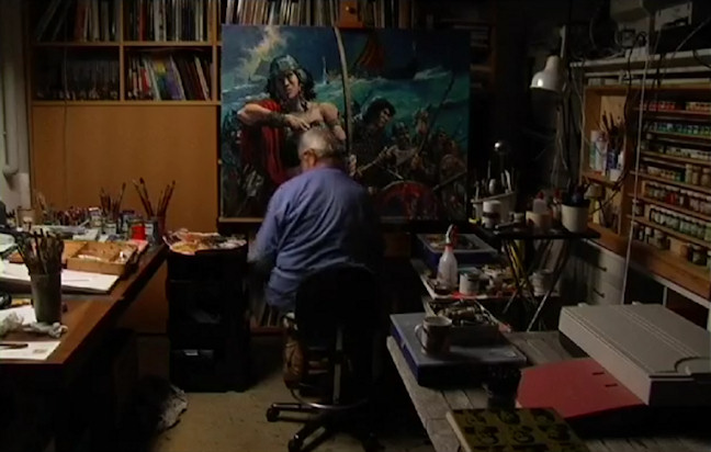 Durant vingt minutes, vous allez découvrir l’auteur dans une vidéo intime, passionnante, alors qu’il réalise une toile devenue une image classique de la série Thorgal. Nous sommes en 2006, l’artiste vit en Suisse dans un écrin de verdure et de montagnes. Le fils de Grzegorz, Piotr, l’accompagne et le filme avec discrétion et sensibilité.