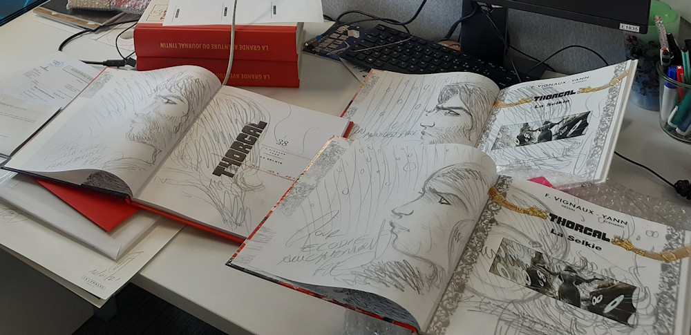Fred Vignaux était dans les locaux du Lombard, cette semaine. Il avait sous le bras quelques beaux albums dédicacés, destinés aux gagnants de notre concours annuel « Le cercle de pierres » !
