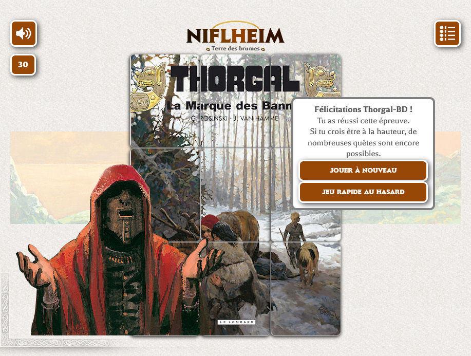 Pour célébrer les 25 ans de présence en ligne, redécouvrez les couvertures mythiques de la série. Les illustrations réalisées pour Thorgal, les Mondes de Thorgal et bien sûr Thorgal Saga sont cachées, mêlées par les dieux moqueurs. Reconstituez-les pour suivre à nouveau le parcours de nos héros.
