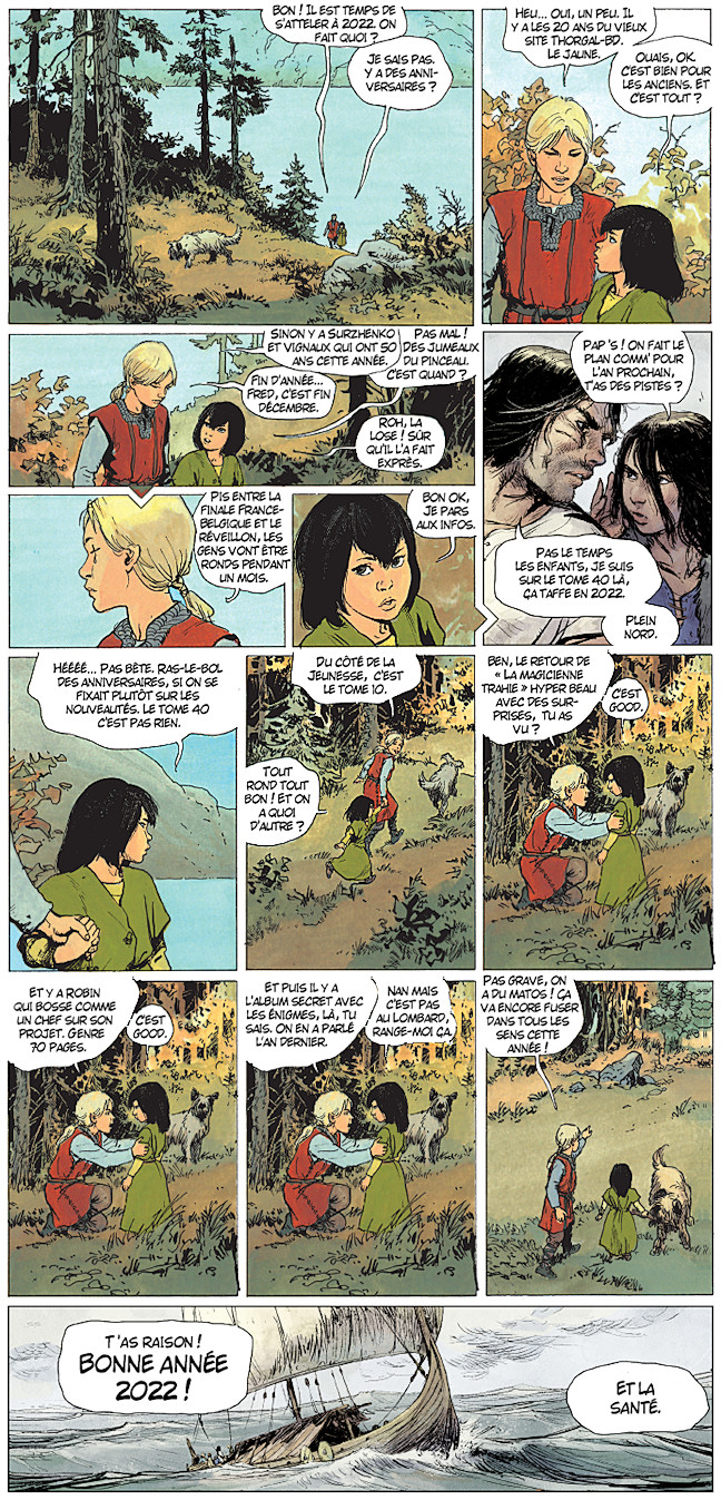 2021 fut une année riche en événements, ils ne furent pas forcément ceux que l’on attendait, mais dans les bons comme dans les mauvais moments le rêve et l’imagination restent des valeurs sûres pour se sentir bien. La lecture de Thorgal a-t-elle pu participer à votre bien-être, à vos moments de détente et de vagabondage ? Nous l’espérons en vous offrant tous nos vœux pour cette nouvelle année qui s’ouvre face à nous.
