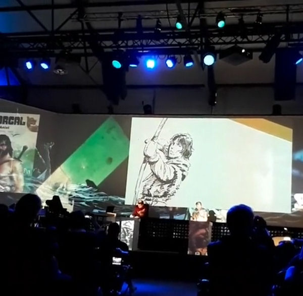 En dehors des dédicaces, les dessinateurs ont également participé à une performance publique projetée sur un grand mur d’écrans. Musique, images animées et dessin en direct, tout en feuilletant les pages des derniers albums, les auteurs et leurs dessins étaient mis à l’honneur, un beau spectacle ! Un court extrait est visible sur le forum.
