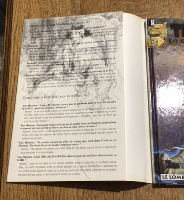 A l’intérieur, magnifique surprise ! Les deux auteurs, Jean Van Hamme et Grzegorz Rosinski, se livrent à un amusant ping-pong verbal à coup de questions un peu impertinentes, histoire de se taquiner tout en s’avouant leur affection commune.