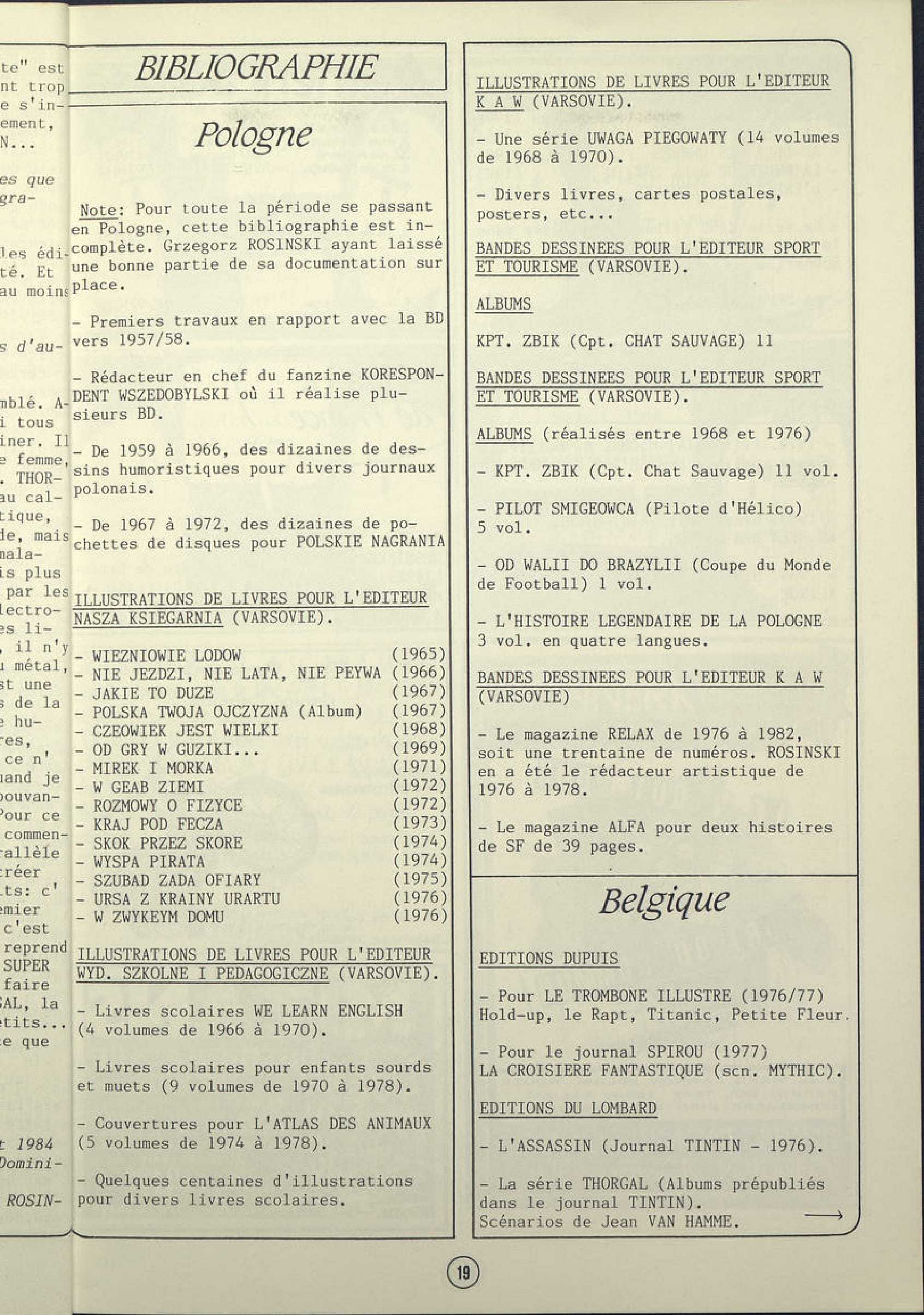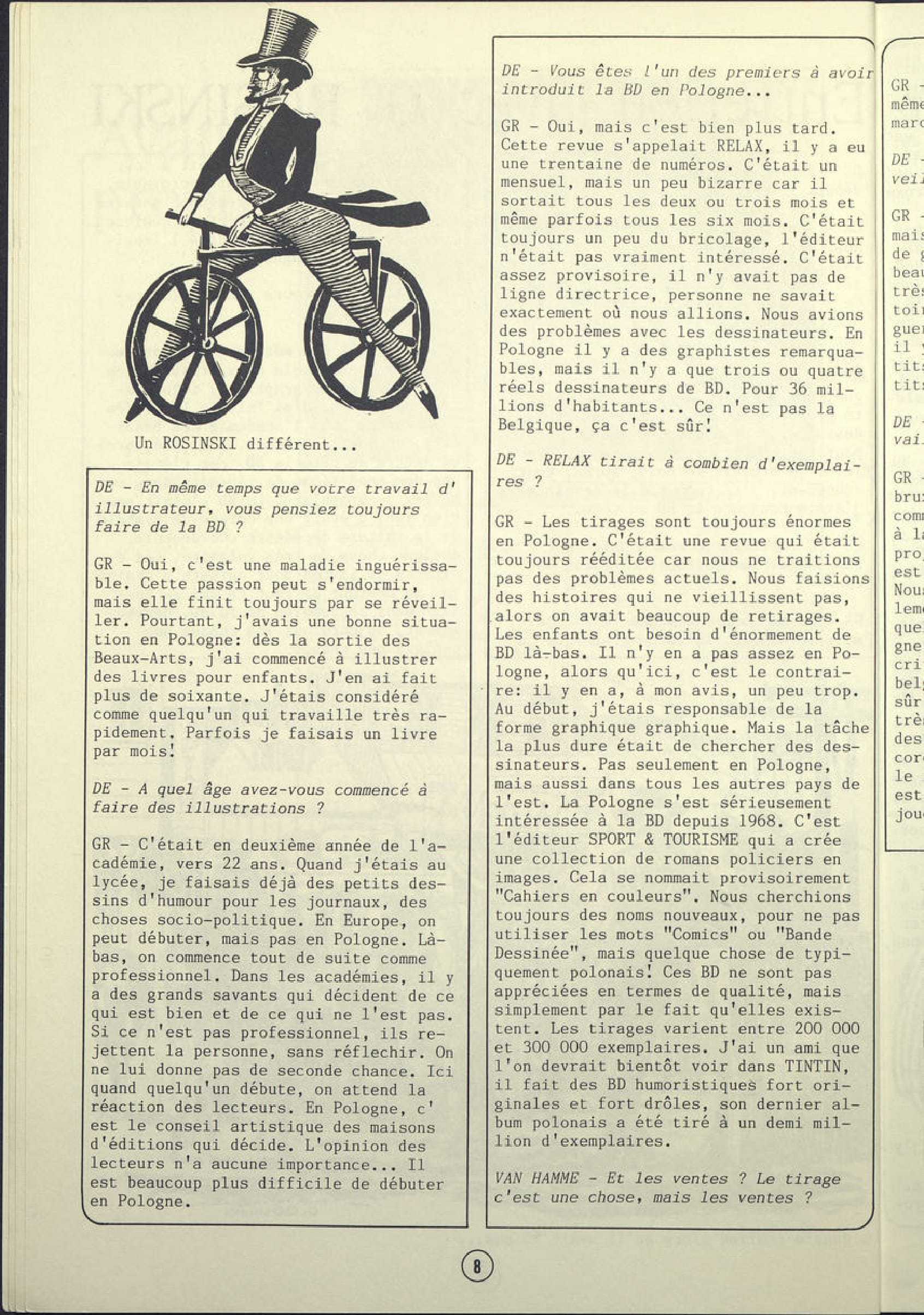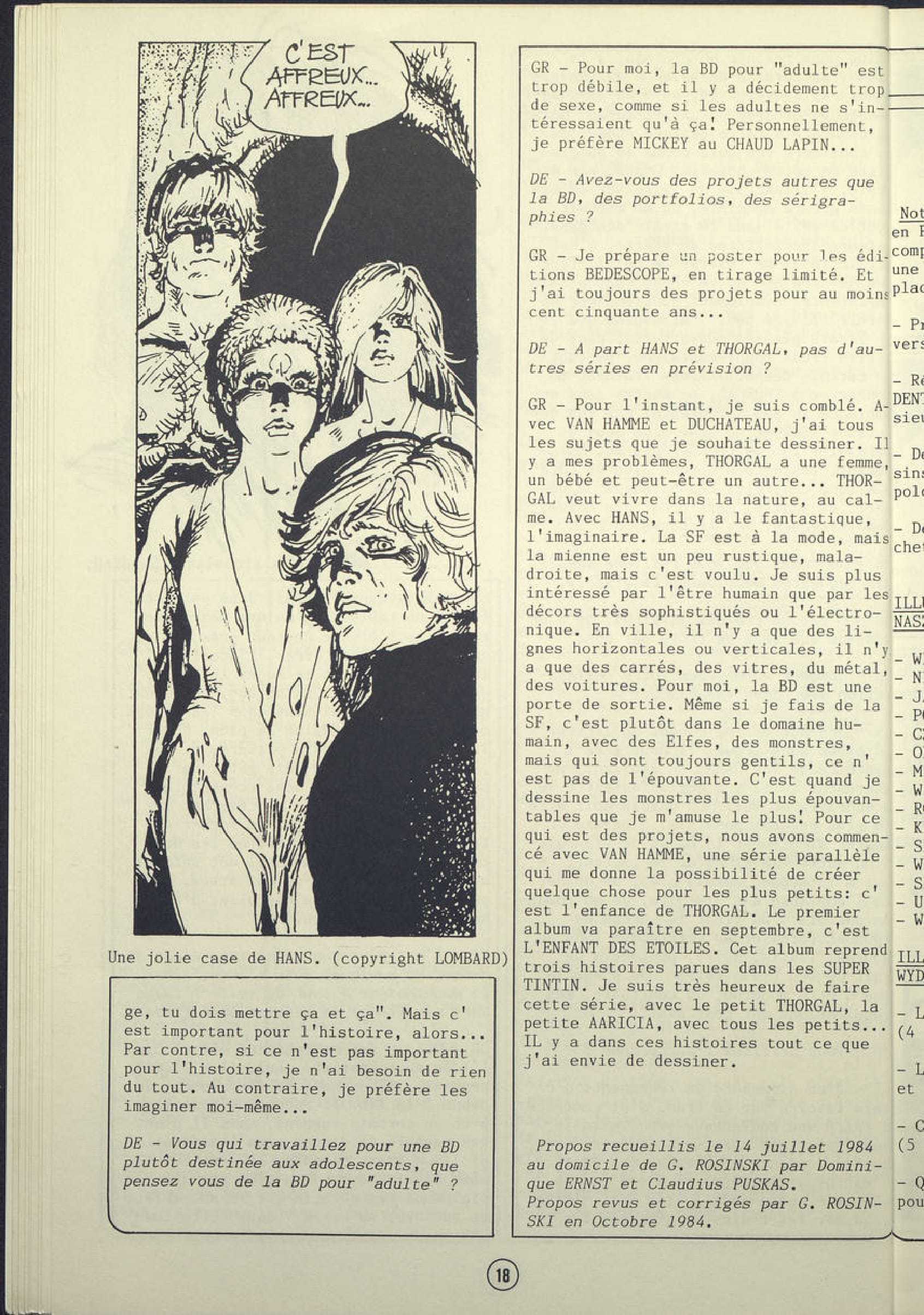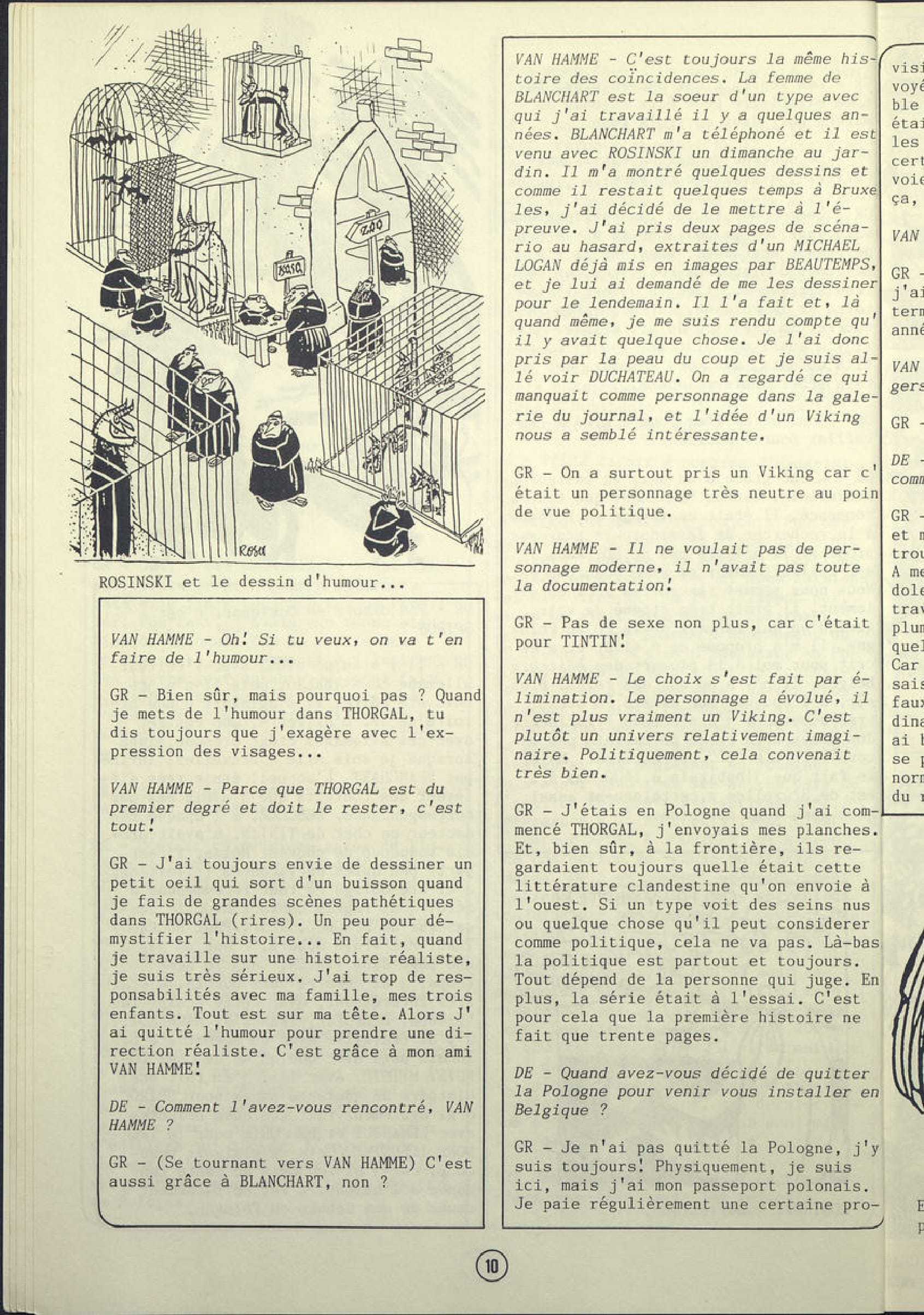 Accueil / Forum / Rosinski – Chninkel, Skarbek et les autres… / Entretien avec Rosinski en 1984 dans Bonté Divine