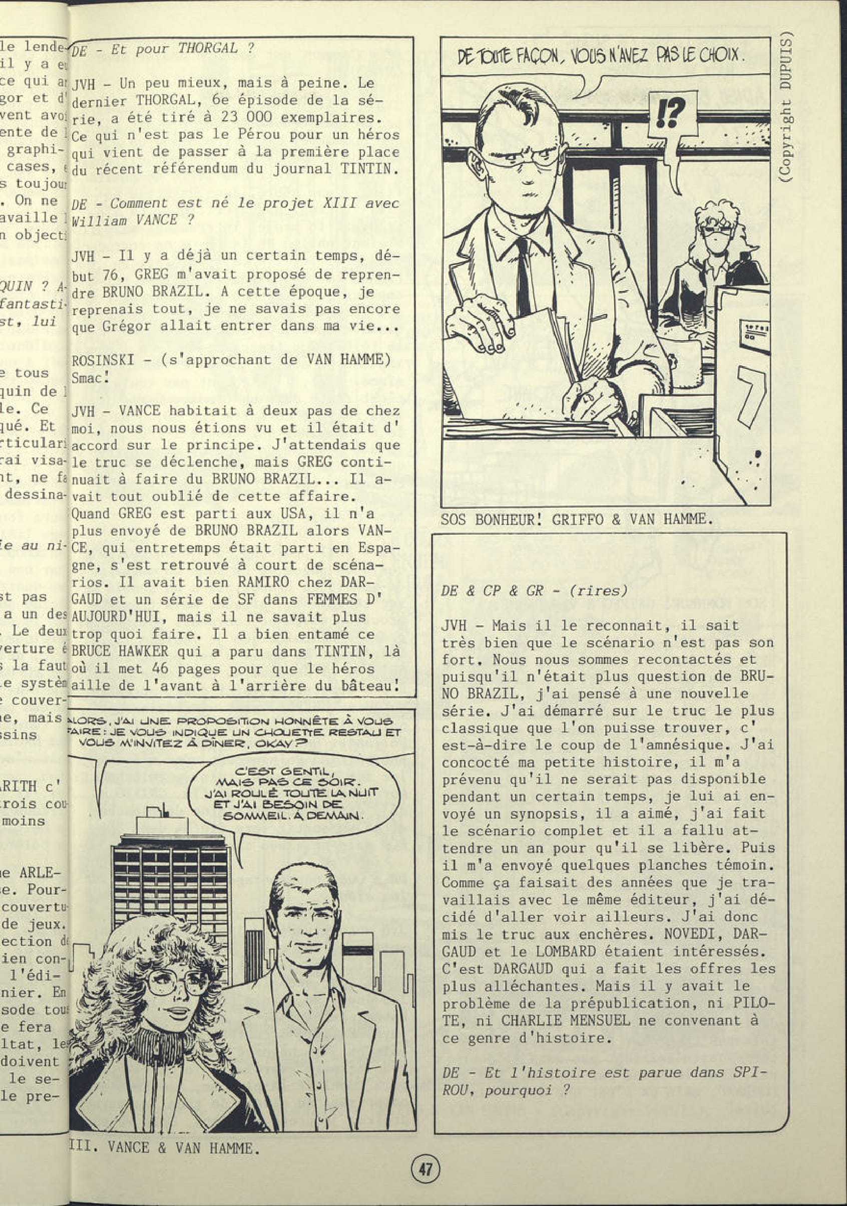 Autre chose assez surprenante, on apprend que c’est pour pouvoir rémunérer Van Hamme en Belgique (pour XIII) que Dargaud a lancé l’activité d’éditeur de sa branche Dargaud Benelux, devenue aujourd’hui une entité éditoriale à part entière.
