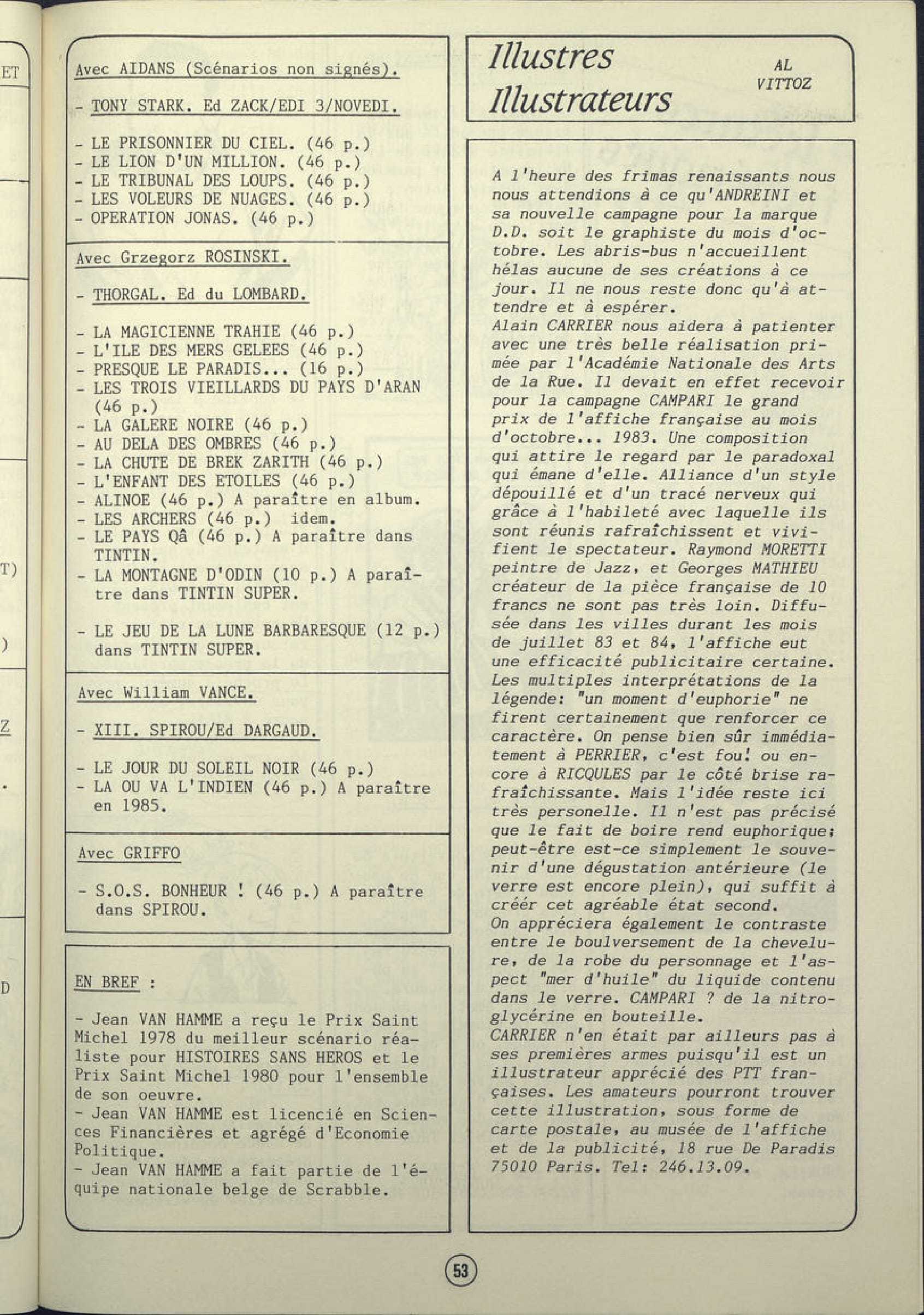 Parmi toutes sortes de petites choses amusantes/intéressantes, on apprend que Jean Van Hamme a fait partie de l’équipe nationale belge de Scrabble.