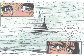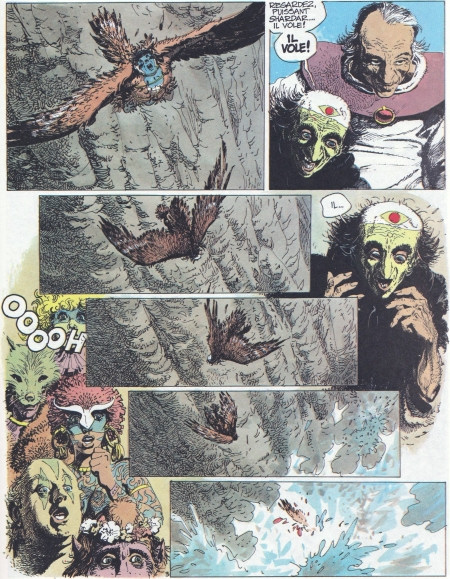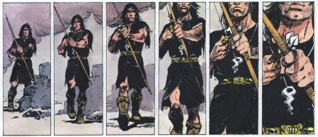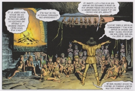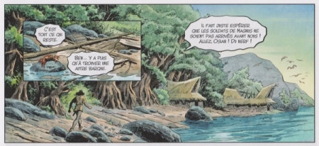> p.14, Giulio De Vita : » Yves et Grzegorz m’ont parlé de la structure de la planche, classique en trois bandes par souci de lisibilité, de la forme des bulles, … «