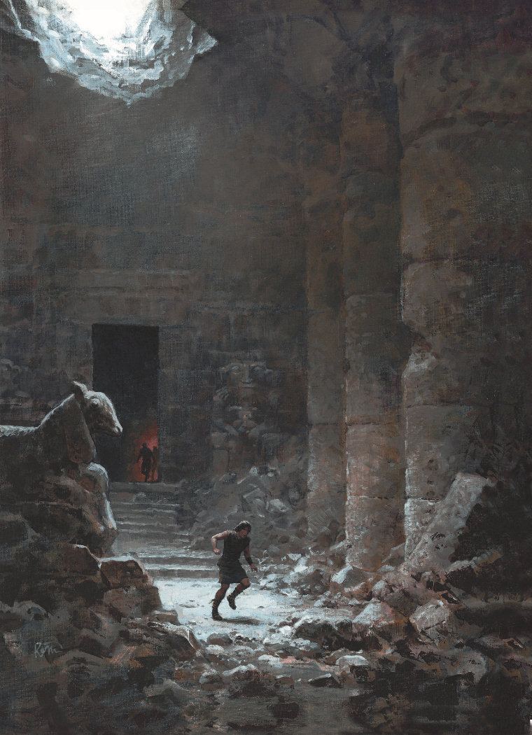 Thorgal tente d’échapper aux hommes qui ont drogué sa famille. Il fuit sa cellule et débouche dans les ruines d’une immense cité millénaire, enfouie sous la terre.