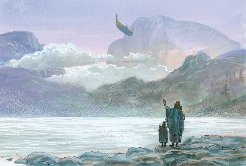 Thorgal et Jolan viennent d’être emportés par le bifrost, l’arc-en-ciel des dieux, vers une destination inconnue, afin d’affronter la colère d’Odin. Aaricia et les enfants sont recueillis par Vigrid, qui les emporte à bord d’une barque sans voile et sans rame vers le pays de leur enfance.