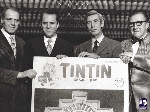 Sur la photo plus haut, vous avez Paul Cuvelier (qui a dessiné Corentin et Epoxy pour Van Hamme), Raymond Leblanc (fondateur des éditions du Lombard, voir son histoire ICI), Hergé (Tintin) et Edgar P. Jacobs (Blake et Mortimer) avec son costard et nœud pap’ inimitable.
