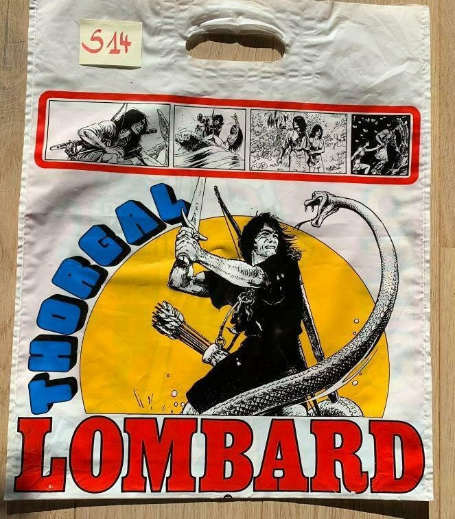 Sac ThorgalEn vente ICI sur 2ème main, ce sac plastique à l’effigie de Thorgal dans « Au-delà des ombres » me rappelle mon enfance, j’ai l’impression d’avoir tenu ce sac du Lombard en main à une époque lointaine…