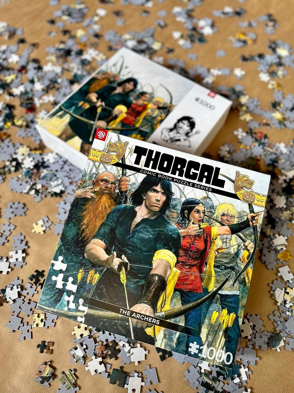 Puzzle Thorgal par Good LootJe vous présentais plus haut le premier puzzle officiel de Thorgal réalisé par la société polonaise Good Loot. Il était basé sur l’illustration de couverture de l’album « Les yeux de Tanatloc ». Un second puzzle de 1000 pièces l’a rejoint, avec cette fois la couverture de l’album « Les Archers ».