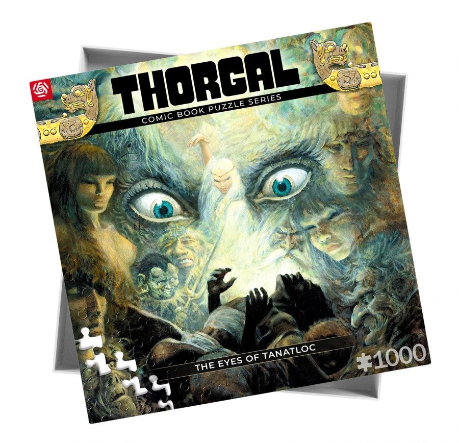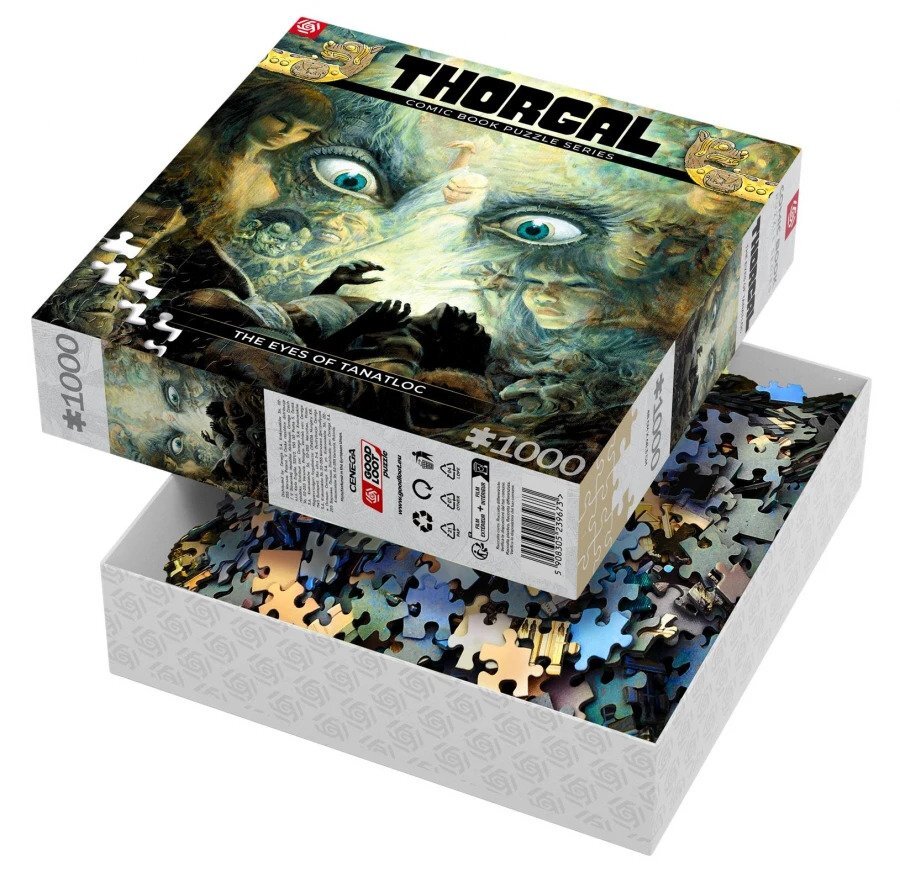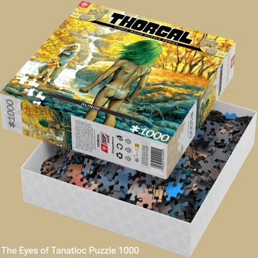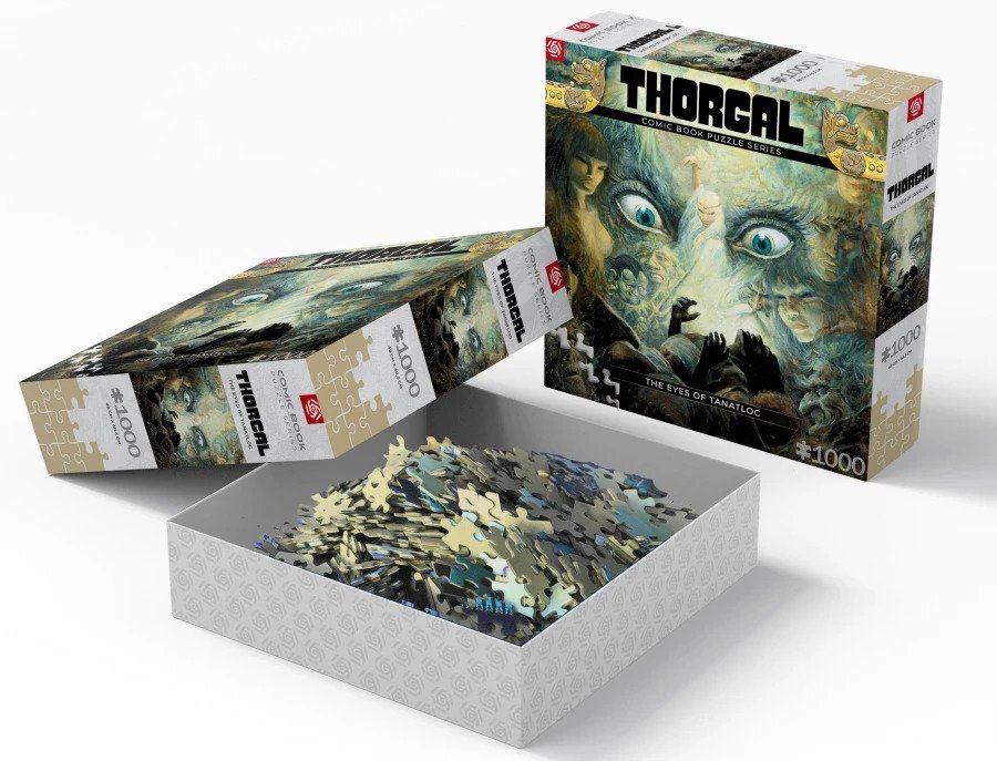 « Tous ceux qui connaissent les bandes dessinées emblématiques de Thorgal savent que ce sont de petites œuvres d’art. Nous le savons aussi, alors nous commençons notre nouvelle série de puzzles de bandes dessinées avec les « Yeux de Tanatloc », qui ornent le 11e volume de la série de bandes dessinées Thorgal. Une attention exceptionnelle aux détails, une belle ligne raffinée et le regard envoûtant situé dans la partie centrale rendent impossible de quitter les yeux. Le regard long produit des sentiments mitigés, une combinaison d’étrange malaise et la présence d’une force cachée. Peut-être que Tanatloc lui-même commence à nous regarder ? »