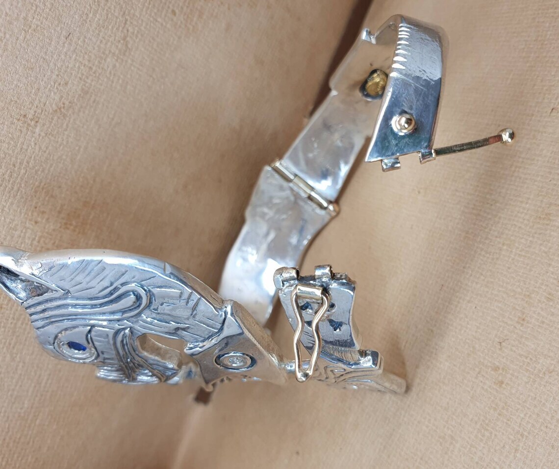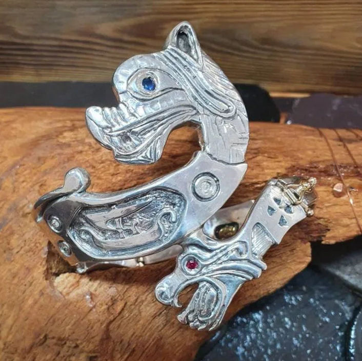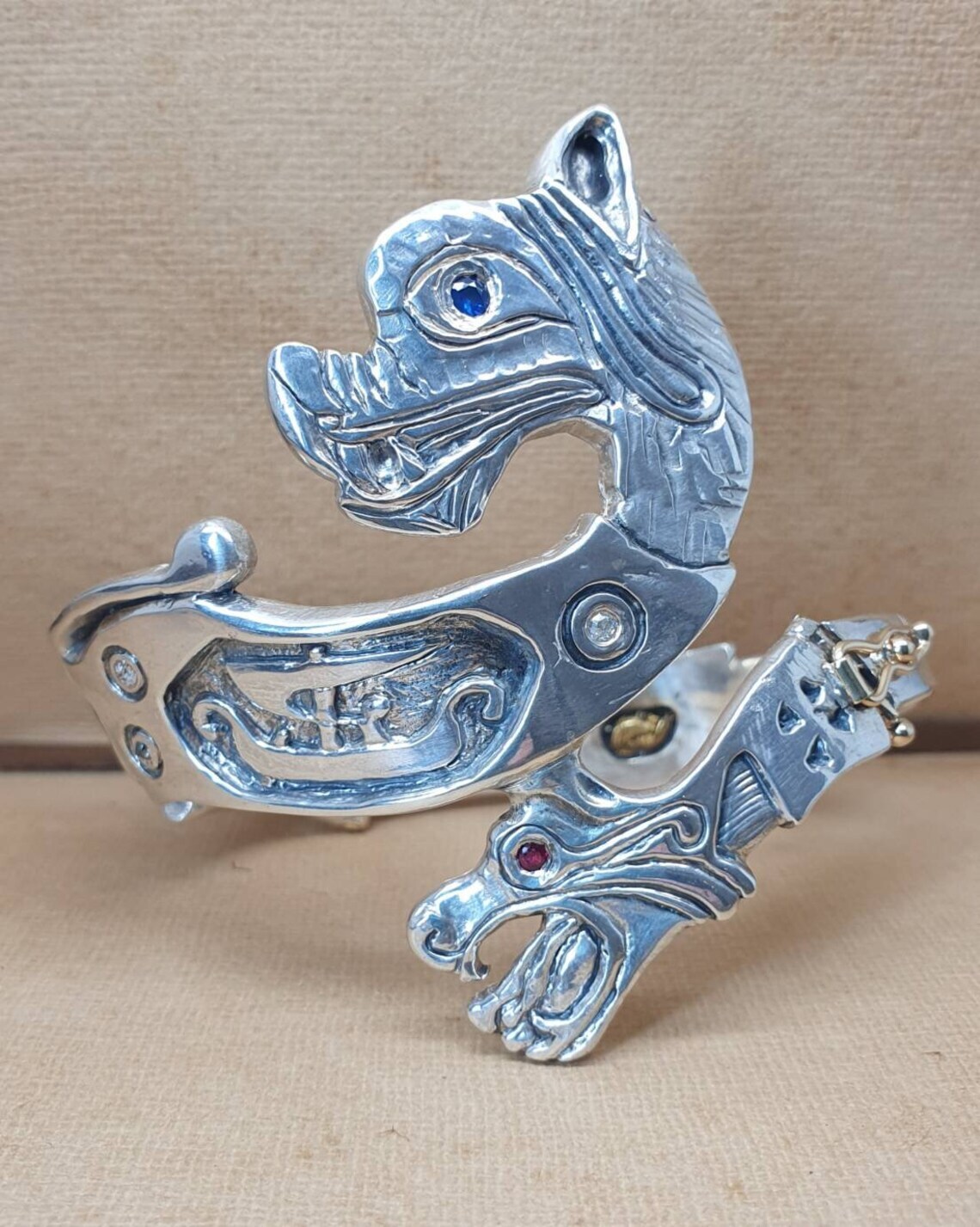 On va voir si tu continues ta thorgalmania avec ce très beau bracelet en vente sur Etsy. Le bracelet est en argent, incrusté de pierres précieuses : diamant, saphir, émeraude, rubis et même d’une pépite d’or !
