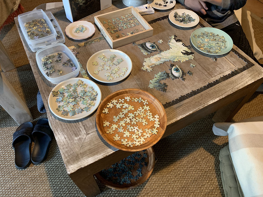 Un puzzle difficile, donc, mais on ne lâche pas l’affaire (d’autant que la table du salon est bloquée, en l’état).