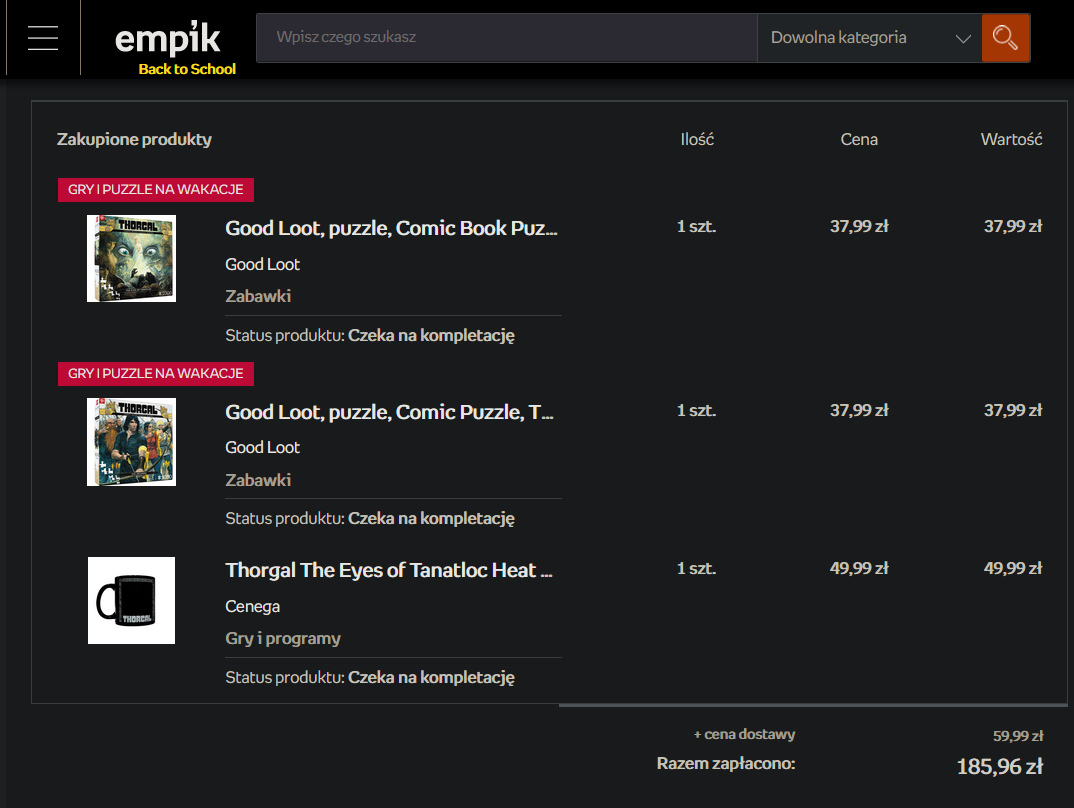 Je teste pour vous. C’était amusant de remplir des cases un peu au pif. Le polonais, on n’y comprend rien. J’ai même pas idée de la valeur en euros de ce que je viens de commander.