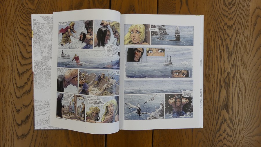 Alors oui bien sûr, l’essentiel est de mettre en valeur le trait de Rosinski et de ce côté-là, mission accomplie. Et les premières versions se sont si largement vendues qu’il ne sera pas difficilement de retrouver ces éléments en achetant ces albums d’occasion pour qui le souhaite. Il est difficile de contenter tout le monde, quelle aurait dû être la marche à suivre pour ne rien perdre ? Peut-être une démarche similaire à celle de Nob sur le premier album de Titeuf, paru initialement en noir et blanc avec un lavis de Zep qui lui aussi comprenait beaucoup d’information – il n’a pas été supprimé sur la version couleur réalisé deux décennies plus tard, les nouvelles teintes ont été insérées en dessous en respectant les textures. C’est un travail de fou pour un cas bien particulier, et on ne peut espérer que ce type d’approche devienne la norme… Mais on aurait pu imaginer quelque chose de similaire sur Thorgal, en repartant des bleus originaux plutôt que de reprendre le travail à zéro.