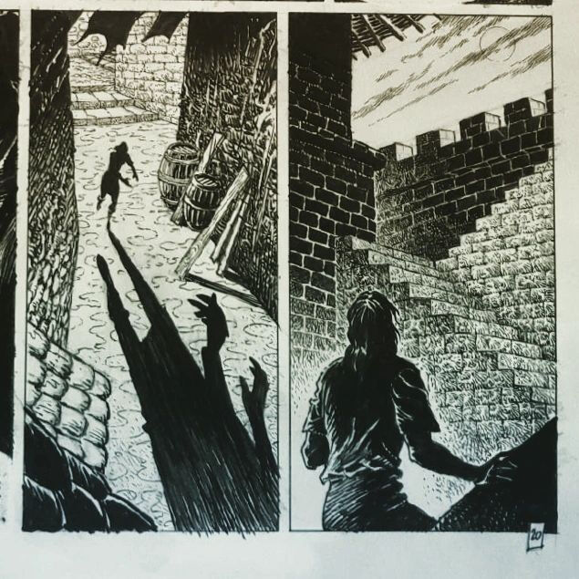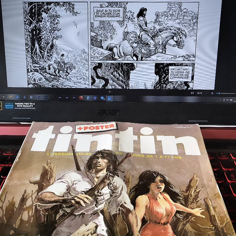 J’étais impatient de découvrir Thorgal dessiné par Mohamed Aouamri. C’est finalement son scénariste qui a partagé une première planche ICI sur sa page Instagram. C’est là qu’on apprend que le coloriste de cet album de 80 pages est Bruno Tatti.Tatti, qui a notamment mis en couleurs le superbe « Ténébreuse » chez Dupuis.