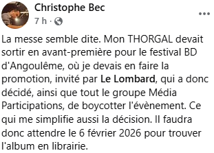 Suite aux nombreuses critiques concernant la gestion du festival BD d’Angoulême, les auteurs et éditeurs boycottent l’évènement. Christophe Bec nous annonce donc qu’il n’y aura pas d’avant-première de son album avant le 6 février.