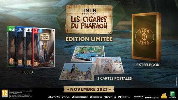 « Il y aura donc une édition limitée et une édition collector Des Cigares du Pharaon coproduit par Tintinimaginatio et Microids et développé par le studio espagnol Pendulo Studios, référence des jeux d’aventure depuis près de 30 ans, Tintin Reporter – Les Cigares du Pharaon sera disponible sur PlayStation 5, PlayStation 4, Xbox Series X|S, Xbox One, Nintendo Switch et PC. L’édition Limitée sera disponible sur PlayStation 5, PlayStation 4, Xbox Series X, Xbox One ainsi que sur Nintendo Switch et comprendra : le jeu en version physique, un steelbook et trois cartes postales. L’édition Collector sera disponible sur PlayStation 5, PlayStation 4, Xbox Series X, Xbox One ainsi que sur Nintendo Switch et comprendra : le jeu en version physique, un steelbook, trois cartes postales, un carnet de notes, un artbook de 160 pages, une figurine inédite.
