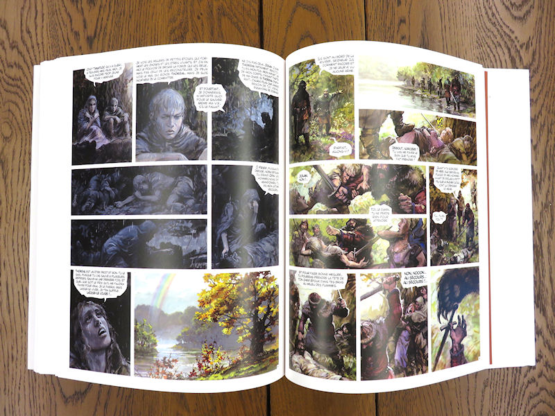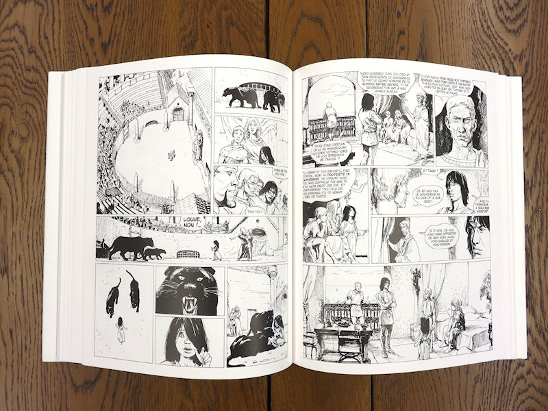 Il y a tout de même une différence importante entre cette édition et l’édition classique. Les cadres des cases et des bulles ont été retirés, livrant les images presque à nu, simplement accompagnées par les textes. Cela pourrait paraître anecdotique, et c’est pourtant magique. Avec des images plus grandes, parfaitement imprimées et épurées, l’album « Le sacrifice » est proposé ici en une version unique, particulière et passionnante à relire. Un joli bijou inattendu, dont la lecture vient clore très judicieusement la collection.
